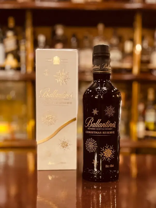バランタイン クリスマス リザーブ(Ballantine's Christmas Reserve)は、毎年数量限定でリリースされているクリスマスシーズン限定の特別ブレンデッド・スコッチ・ウイスキーです。バランタインの5代目マスターブレンダー、サンディー・ヒスロップ氏が雪景色や聖夜をイメージしたスペシャルブレンドで、キーモルトとしてミルトンダフ(Miltonduff)とグレンバーギー(Glenburgie)の原酒を厳選使用し、甘めの仕上げでクリスマスの華やかな雰囲気を表現しています。