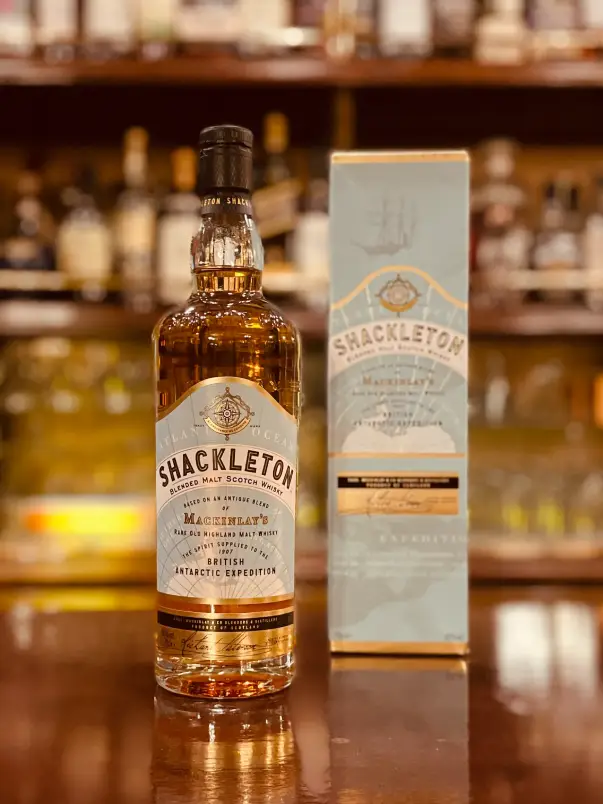 シャクルトン ブレンデッドモルト(Shackleton Blended Malt Scotch Whisky)は、ホワイト&マッカイ社(Whyte & Mackay)が製造するスコッチウイスキーです。1907年のイギリス南極探検隊を率いた探検家アーネスト・シャクルトンが持ち込んだウイスキーを再現した、歴史ロマンあふれる一本として人気があります。1907年の南極探検で、シャクルトンはマッキンレー社(現ホワイト&マッカイ)のウイスキー25ケースを船に積み込みました。2007年、ニュージーランドの探検隊がシャクルトンの基地跡の氷の下から無傷のボトルを発見。これを科学的に分析し、マスターブレンダーのリチャード・パターソン氏が味わいを再現しました。最初は限定高級版(Discovery / Journeyエディション)としてリリースされ、その後2017年頃から手頃なコアレンジ版として「Shackleton Blended Malt」が発売されています。